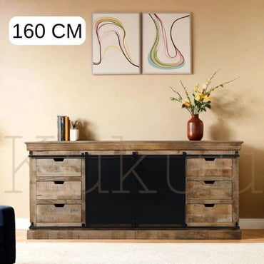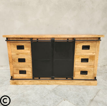 Découvrez notre magnifique buffet industriel à portes coulissantes, fabriqué en bois massif de manguier et métal, un meuble robuste et élégant qui apportera une touche industrielle...