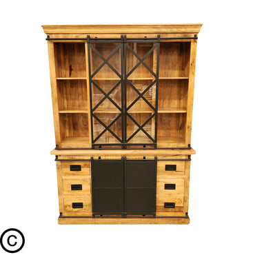 Vaisselier industriel moderne INDUS - Bois massif et métal - 140 à 200 cm